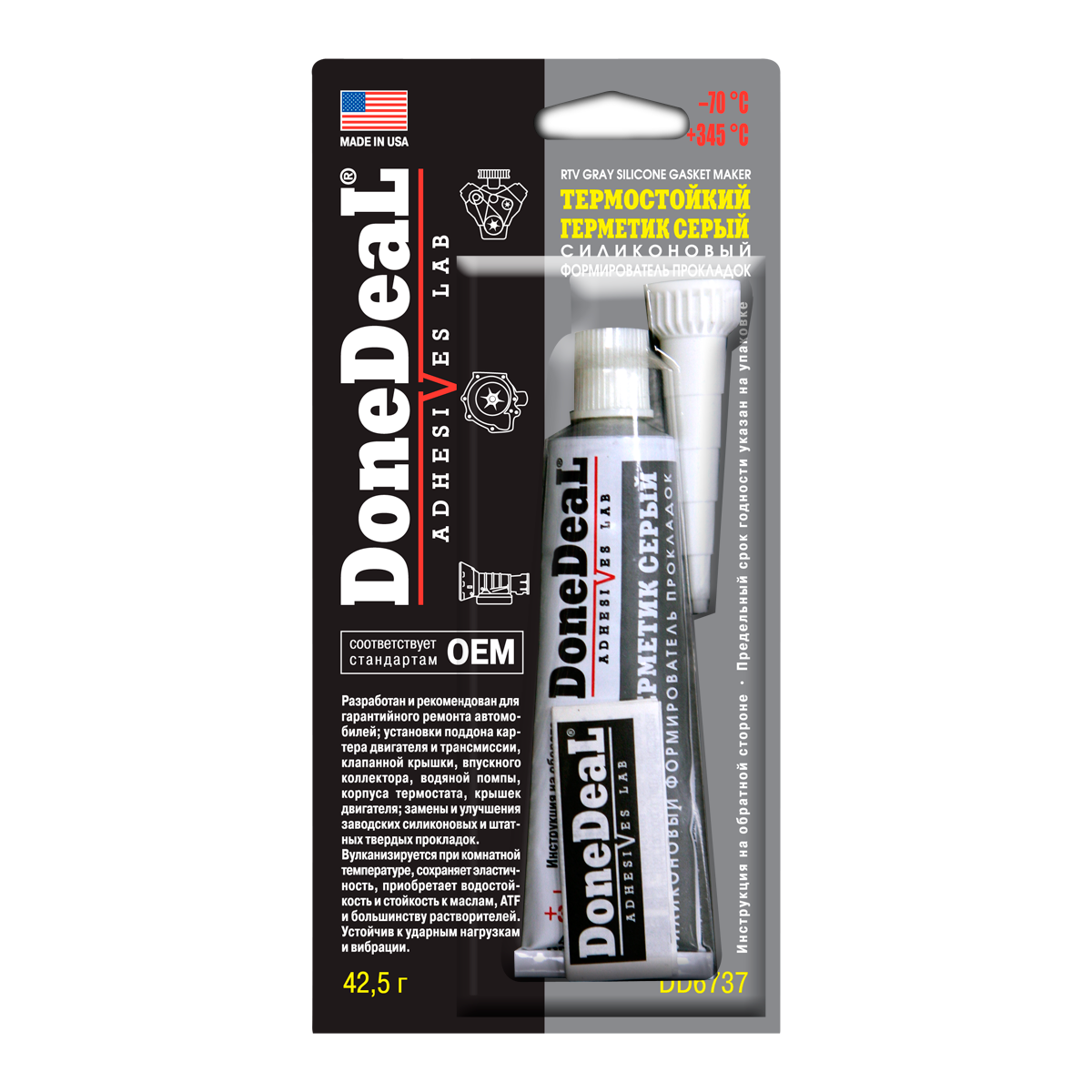 DD6737 "ОЕМ" Термостойкий серый силиконовый формирователь прокладок DoneDeal, 42,5г