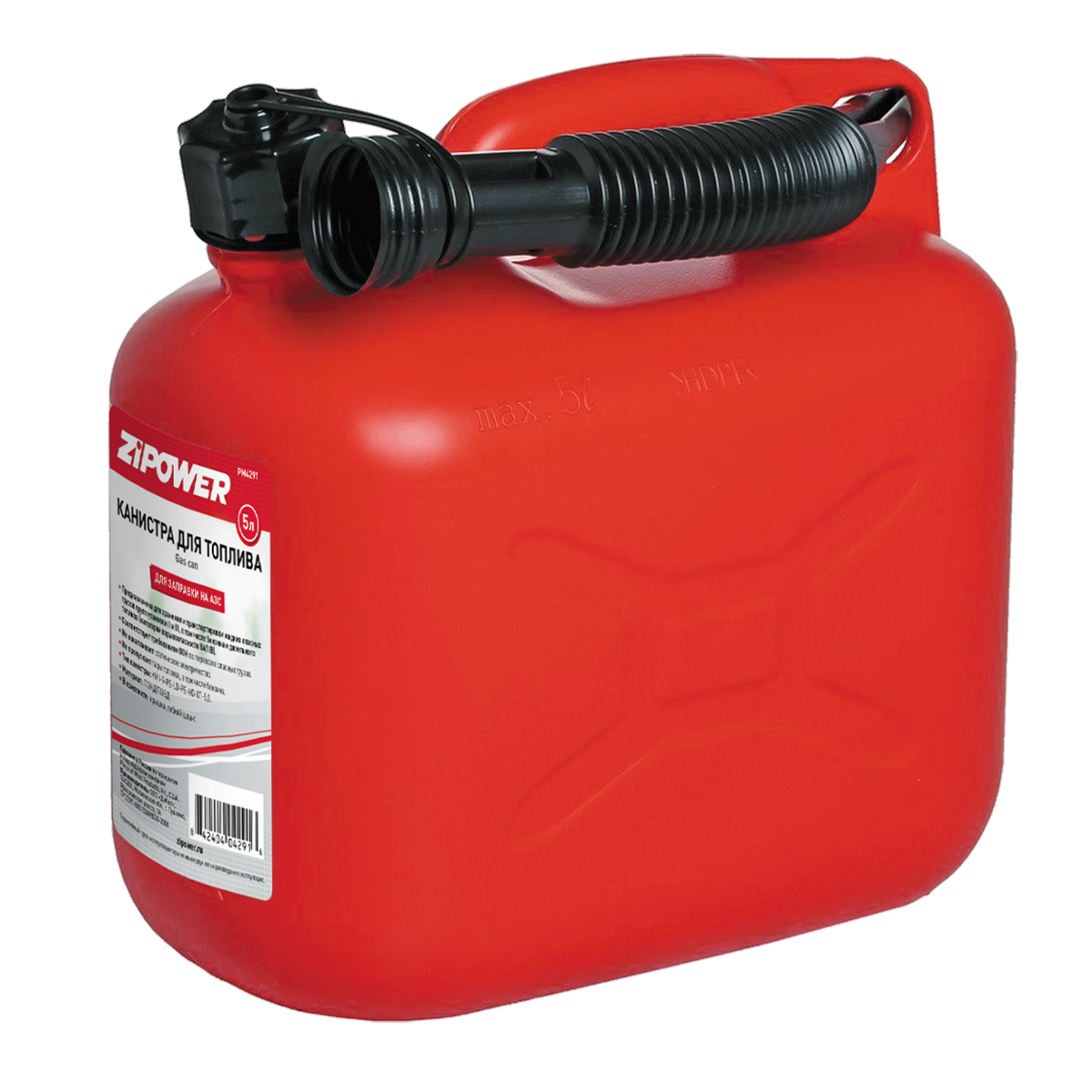 Канистра для топлива, 5 л, (красная) ZIPOWER PM4291