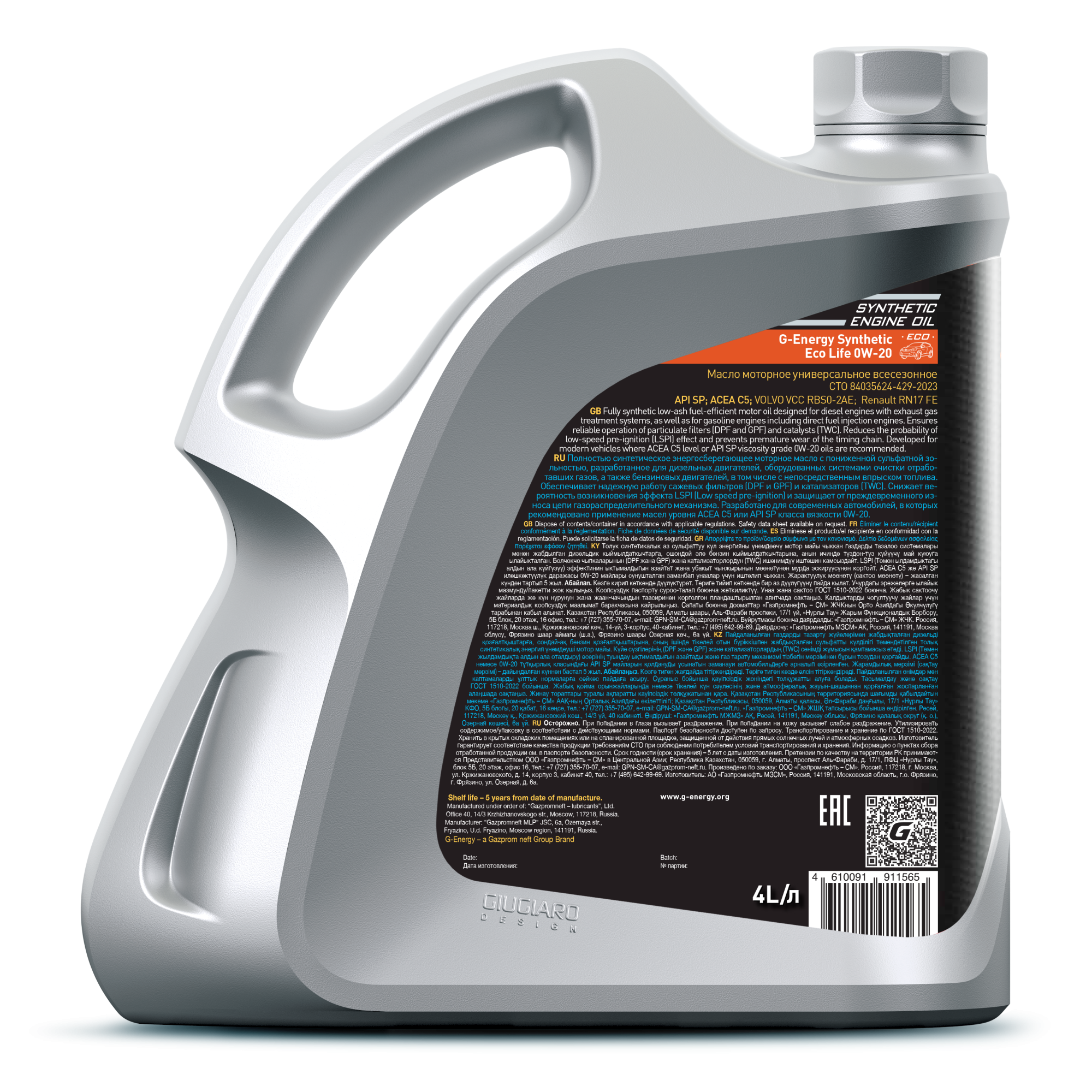 G-Energy Synthetic Eco Life 0W-20 – энергосберегающее малозольное синтетическое моторное масло с низким содержанием серы и фосфора. Разработано для бензиновых и дизельных двигателей, оборудованных системами очистки отработавших газов, в том числе с непосредственным впрыском топлива. Обеспечивает надежную работу фильтров выхлопных газов (DPF и GPF) и катализаторов (TWC). Снижает вероятность возникновения эффекта LSPI (Low speed pre-ignition) и защищает от преждевременного износа цепи газораспределительного механизма.